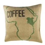 Jedes Kissen ein Unikat – der Bezug wird aus alten Kaffeesäcken genäht. Reißverschluss auf der Rückseite.
